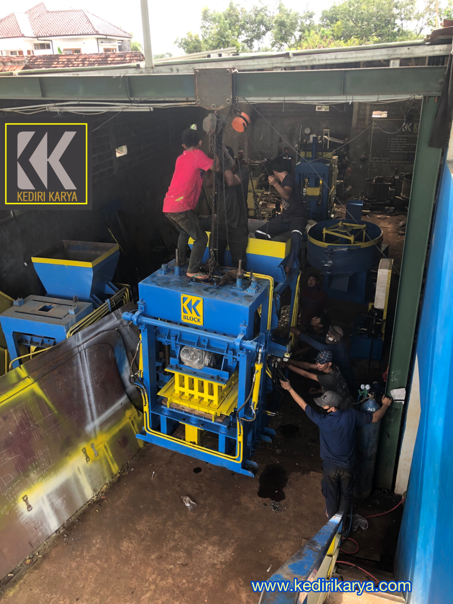 pengiriman tujuan Makassar mesin cetak paving hidrolik singel slide.